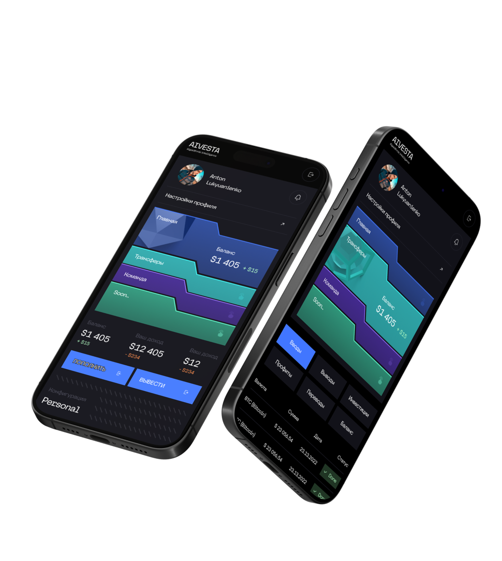 AiVesta is an innovative company that invests significant resources in developing its own software - a mobile investment application. Our mobile app will be available on leading platforms such as the AppStore and GooglePlay, providing convenience and accessibility to a wide range of users.